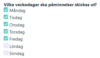 Välj de dagar du vill att systemet skickar påminnelser