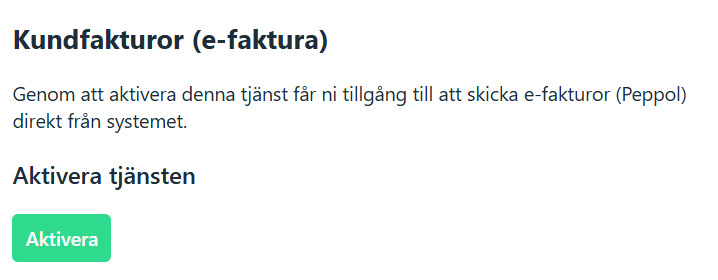 OBS! Innan du aktiverar tjänsten bör du kontrollera att du har rätt uppgifter inlagda om ditt företag.