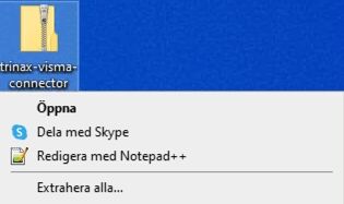 Klicka här för att ladda ner trinax-visma-connector-v1.9.1.zip. Högerklicka sedan på den nedladdade filen och välj "Extrahera alla..." för att packa upp ZIP-filen till önskad plats.