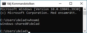 För att få reda på användarnamnet till Windows-kontot kan du öppna programmet "Kommandotolken", skriva in "whoami" och klicka på enter. Det ska innehålla både ett datornamn och ett kontonamn.