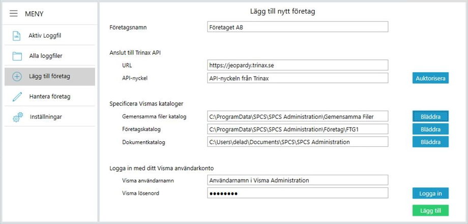 Gå sedan vidare till fliken "Lägg till företag" och fyll på med nedanstående uppgifter: