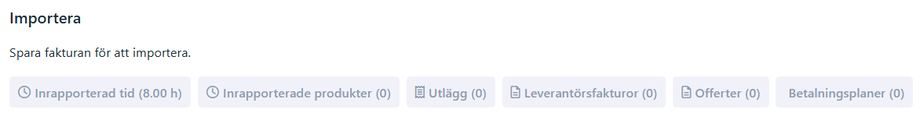 Om det finns en ruta som är grå men det ändå finns en siffra inom parentes, t.ex. som det gör i Inrapporterad tid (8.00 h) som du ser på bilden ovan, behöver du trycka på knappen Spara i övre högra hörnet för att först spara ditt fakturautkast.