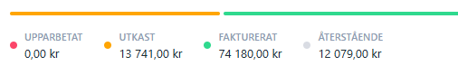 I det övre högra hörnet i fliken Underlag visas en tydlig stapel som snabbt ger dig koll på hur mycket av projektets intäkter som just nu ligger som utkast. Den här stapeln fungerar som en påminnelse om att det finns utkast att ta tag i. Klicka på fliken Utkast för att granska och färdigställa dem.