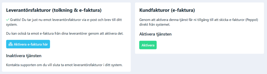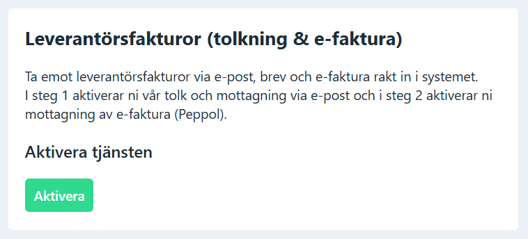 För att kunna ta emot Leverantörsfakturor behöver du först aktivera funktionen.
