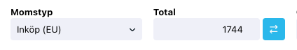2. När momstypen på leverantörsfakturan är "Inköp" så dyker knappen för valutakonverteraren upp