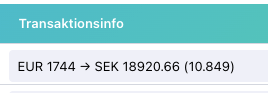 4. Detta uppdaterar kontoregistreringen och visar tydligt i transaktionsinfon vad som har hänt med beloppet.