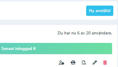 Har du nått taket för antal licenser klickar du bara på knappen Ny anställd och kan då beställa fler som du direkt kan börja använda. För att göra detta måste du vara administratör.