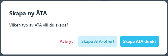 När du klickar på Skapa ÄTA uppe till höger i ett befintligt projekt, får du två val: