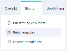 Gå till fliken Ekonomi i projektet och sedan vidare till Betalningsplan.