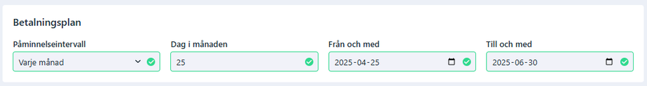 Du lägger upp en betalningsplan med fasta belopp och datum.